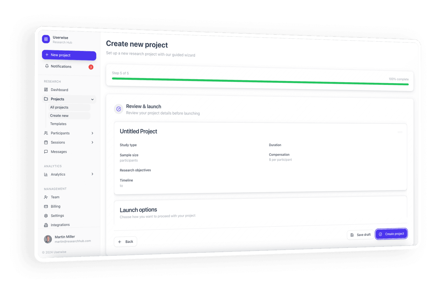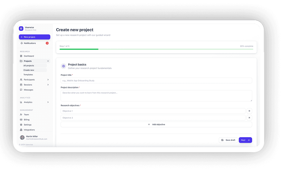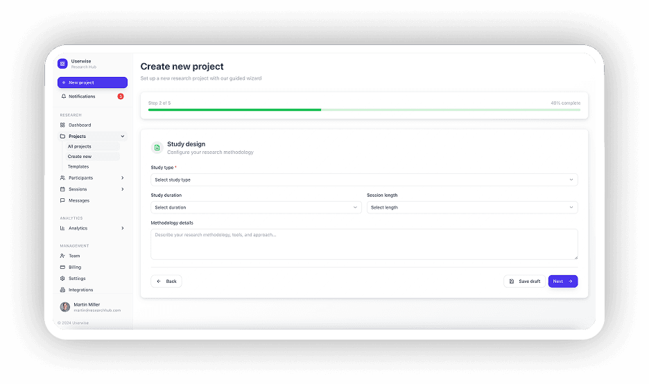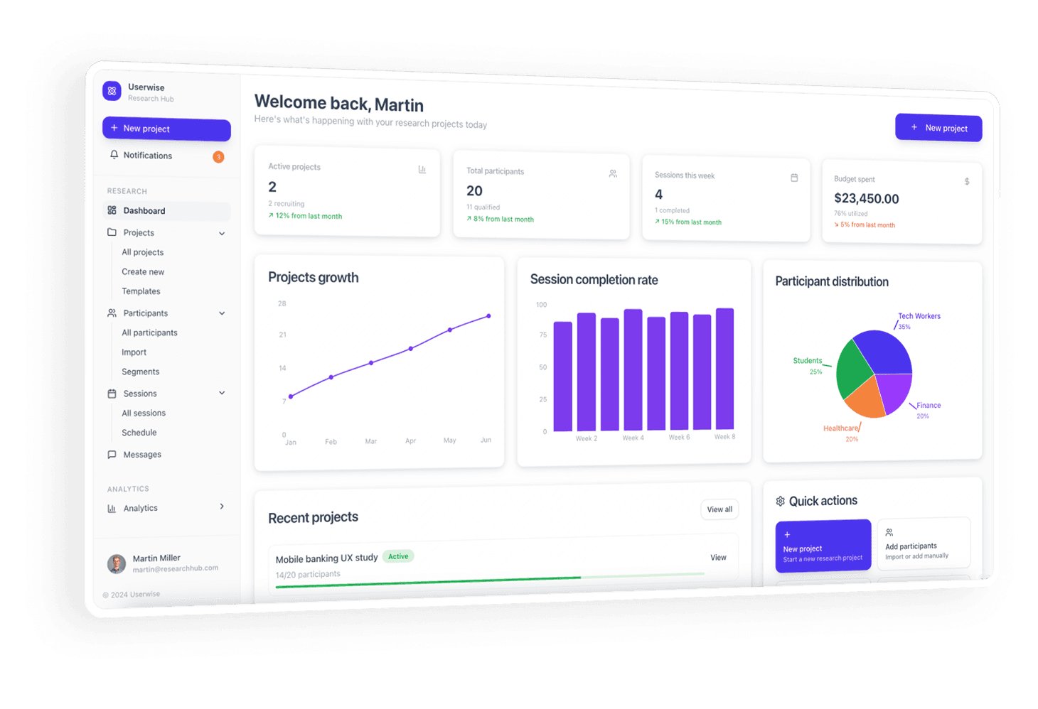 Userwise is an advanced User Research Management Platform built to help UX researchers and product teams run, track, and analyze user research at scale. It supports a full workflow including project planning, participant management, scheduling, analytics, and insights delivery — all in one centralized tool. The platform was developed by a team with prior success in the research-tech space. Their goal was to expand into the US market with a more integrated, high-performance solution, combining research operations, survey building, and analytics into one product.