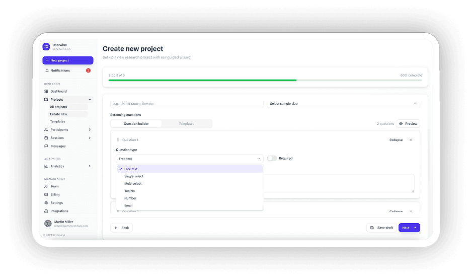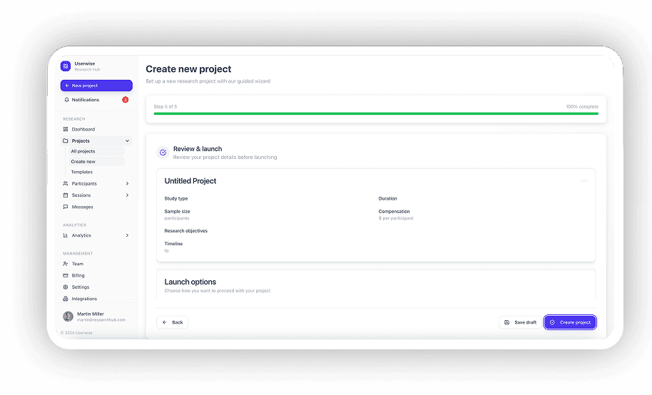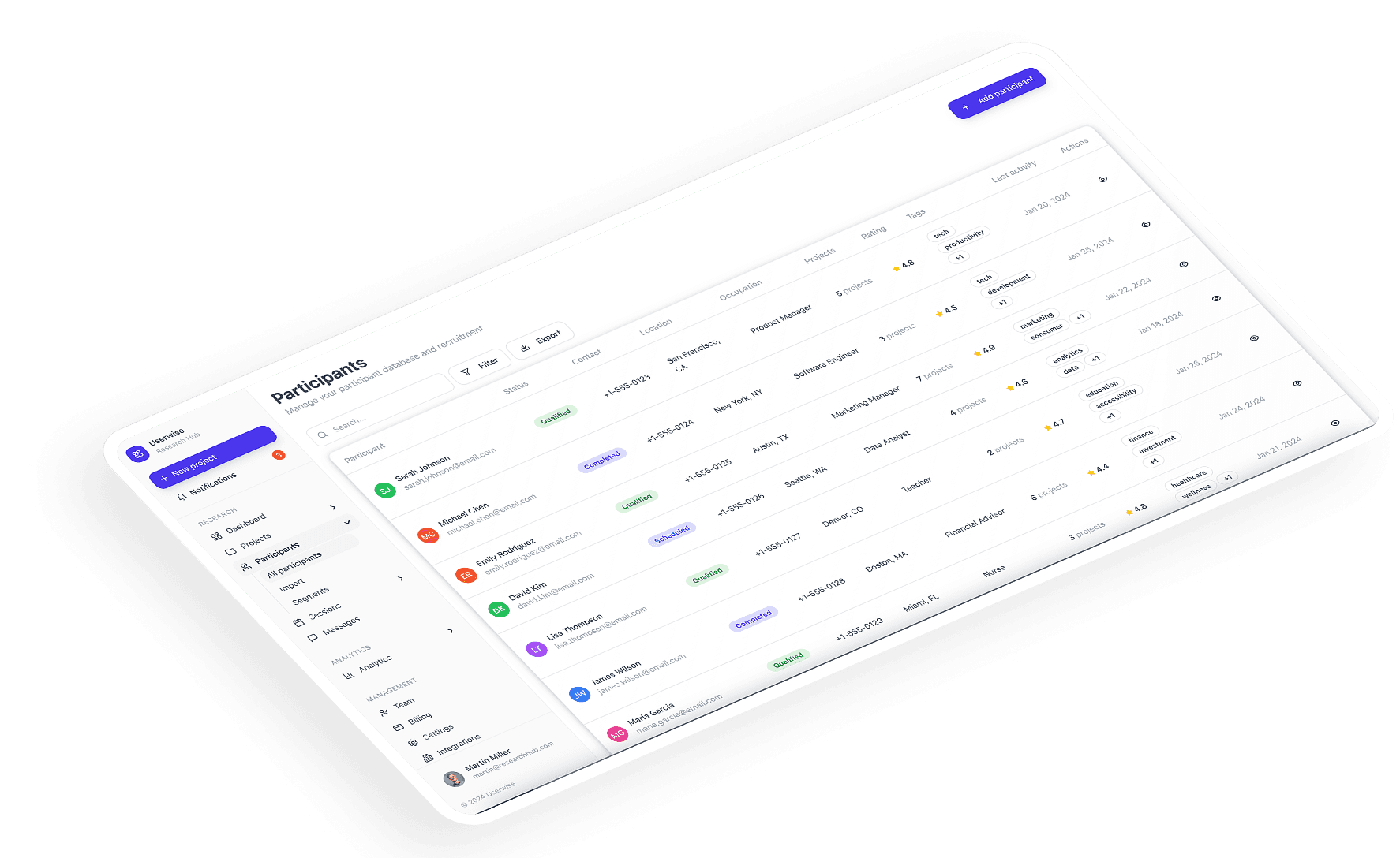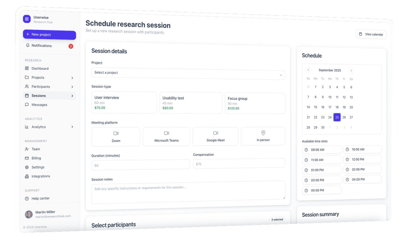Userwise is an advanced User Research Management Platform built to help UX researchers and product teams run, track, and analyze user research at scale. It supports a full workflow including project planning, participant management, scheduling, analytics, and insights delivery — all in one centralized tool. The platform was developed by a team with prior success in the research-tech space. Their goal was to expand into the US market with a more integrated, high-performance solution, combining research operations, survey building, and analytics into one product.