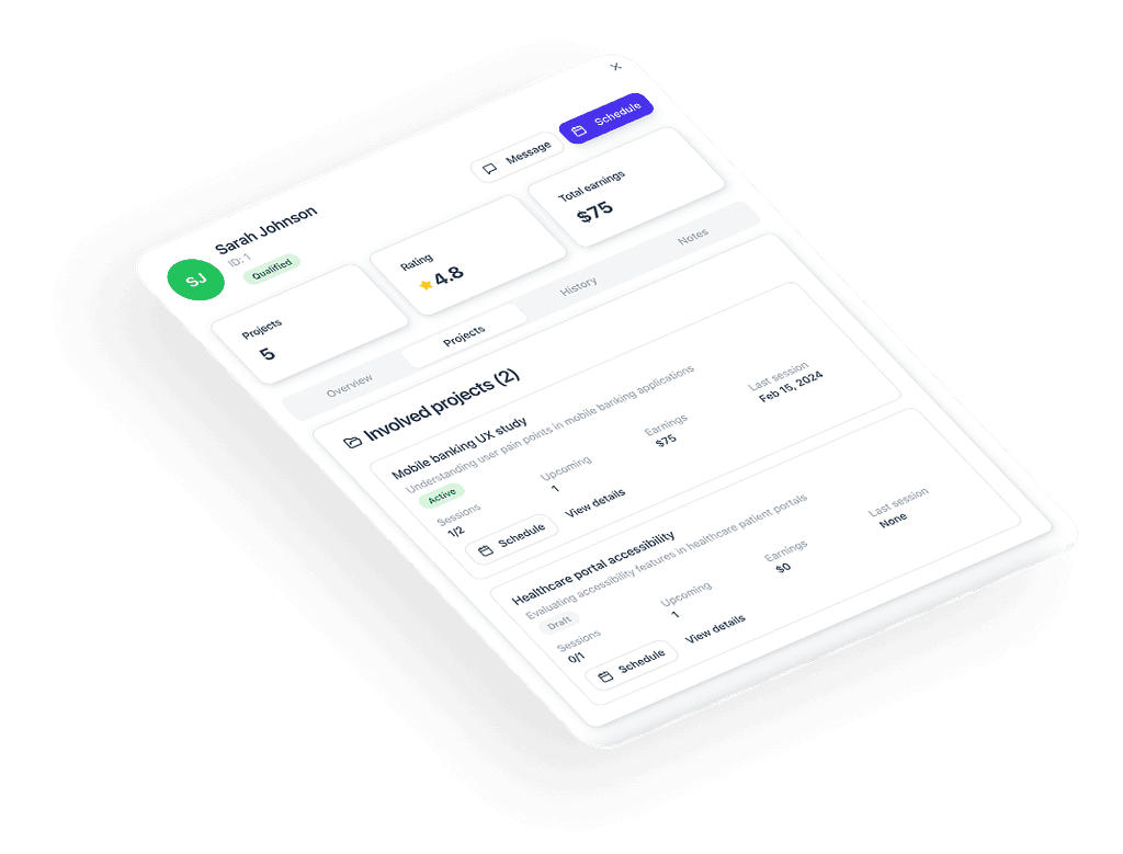 Our workflows were tailored for research teams, with special attention to usability testing, no-show handling, and study lifecycle tracking. We worked in short feedback loops, organizing moderated user tests after each round and refining flows accordingly.