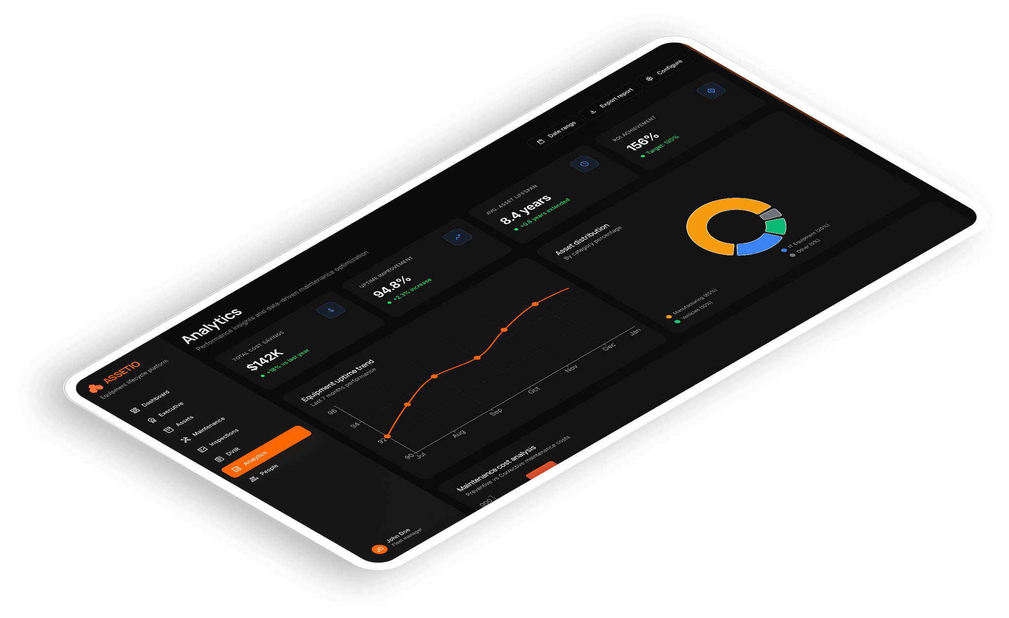 Created predictive maintenance modules and dashboards showing uptime, ROI, and compliance metrics