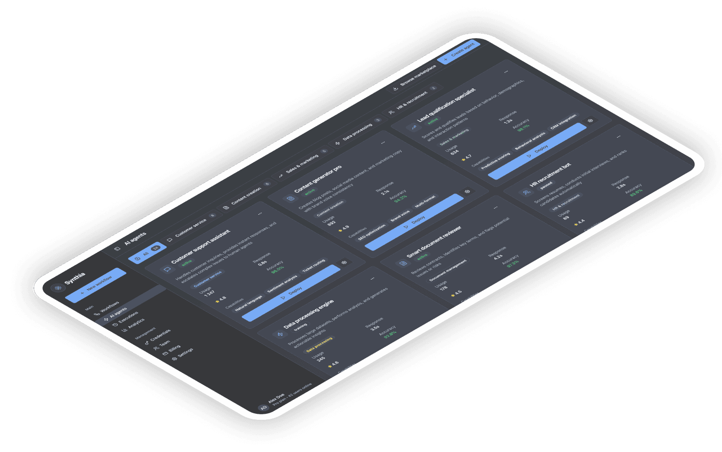 Synthia is now actively used by early-stage users for testing and workflow automation. Our designs became the foundation for engineering handoff and helped the team launch a working MVP without hiring a full product team. The company continues to expand on the system and is preparing for larger rollouts.