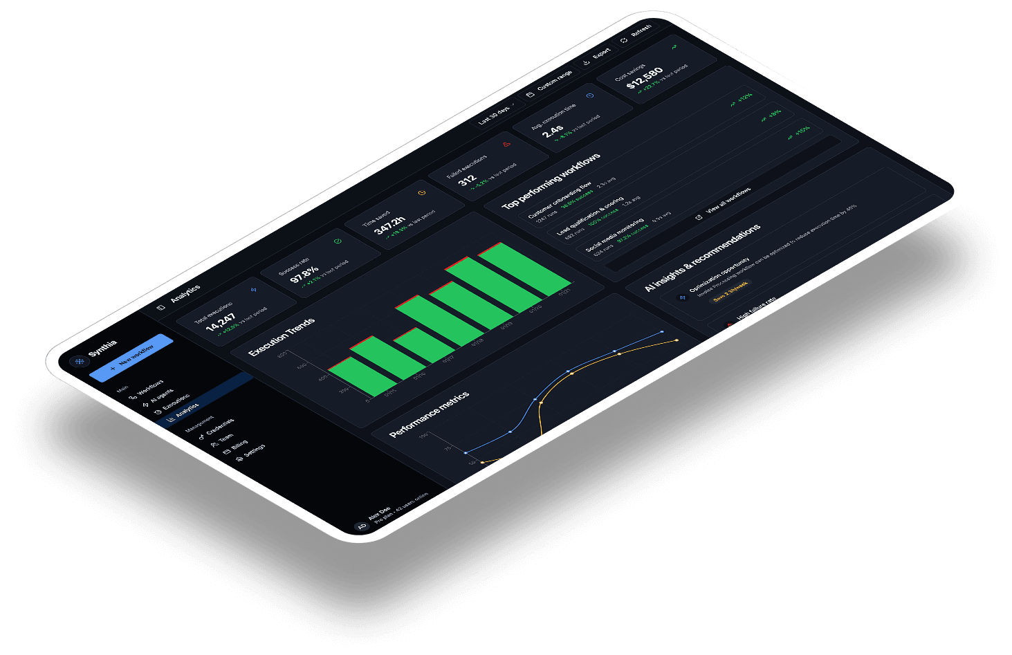 Multi-level dashboards for workflow execution, analytics, and agent control