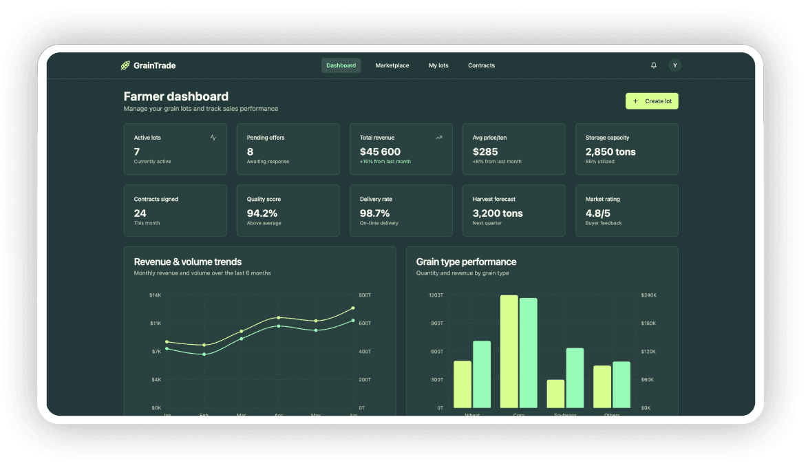 The GrainTrade platform is now entering development, with positive feedback from early testers. The company is actively using our prototypes to drive stakeholder buy-in, align internal teams, and prepare for its expansion into the EU market. Our collaboration helped them move from legacy to leadership in an industry ripe for disruption.